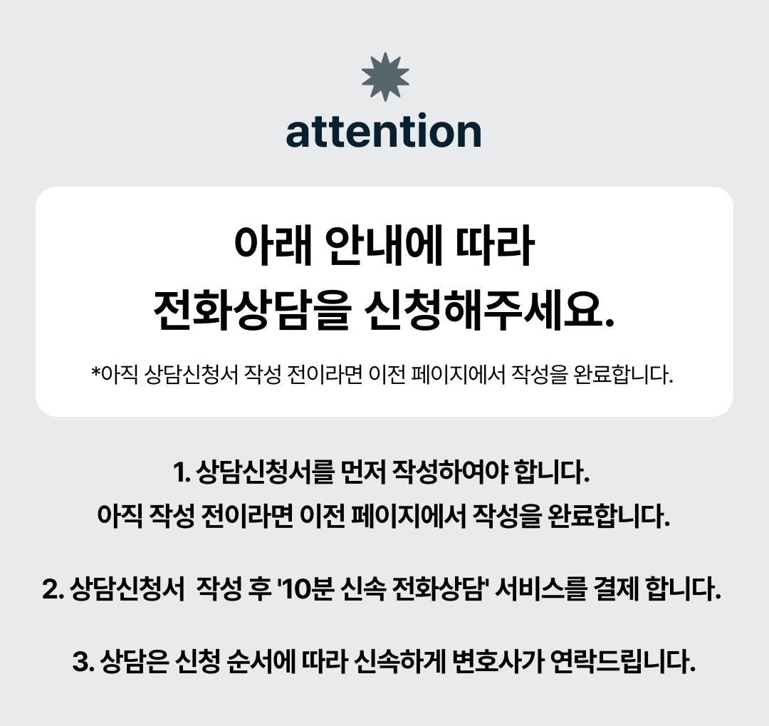 3. 상담은 신청 순서에 따라 신속하게 변호사가 연락드립니다.